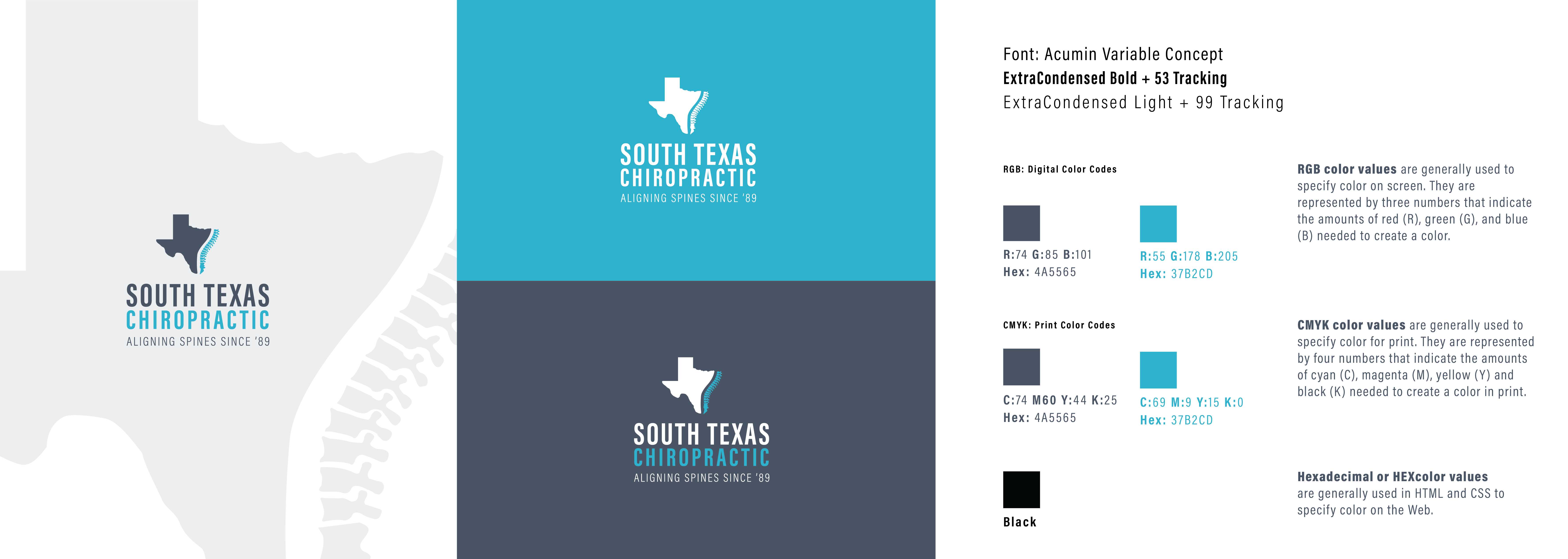Logo creation and branding: Incorporated the anatomy of the spine to curve out the rest of Texas.